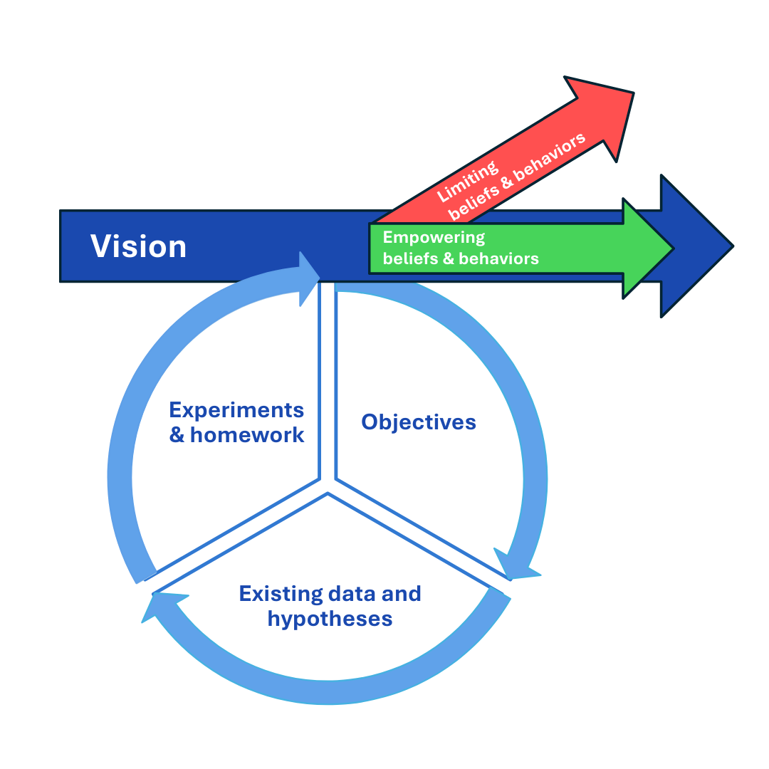 NextLeader Coaching helps you bridge the gap between your current career status and where you envision your ideal career to be. We start by clarifying your overarching goals and then engage in tailored coaching sessions to identify objectives, reflect on your development, and design actionable experiments. Each coaching session continuously refines your actions as we identify empowering beliefs & behaviors to keep, and the limiting beliefs and behaviors to stop to create long-lasting change.